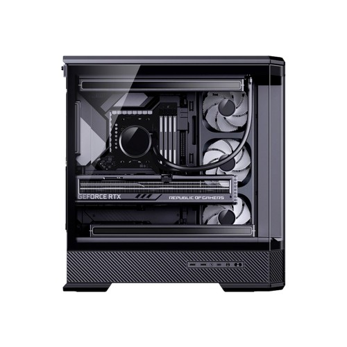 Елегантний корпус для ПК створений для тих, хто цінує поєднання стилю та функціональності. Його сучасний мінімалістичний дизайн гармонійно впишеться як у робочий простір, так і в ігрову станцію, підкреслюючи естетику зібраної системи.