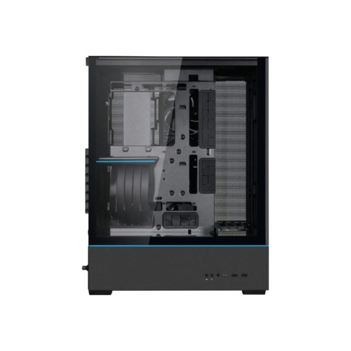 Однією з ключових особливостей цього корпусу є його ефективна система вентиляції. На передній, задній і верхній панелях передбачено місця для встановлення вентиляторів різного діаметра. Це дозволяє створити максимально ефективний потік повітря, що забезпечить охолодження всіх компонентів.