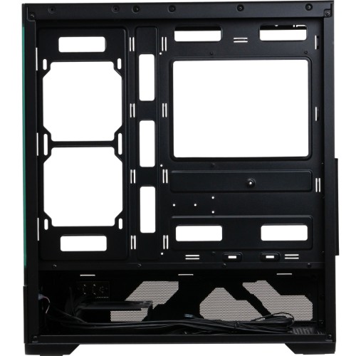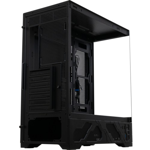 Щодо вентиляції, корпус пропонує можливості для встановлення додаткових вентиляторів: з боків – 2x12 см, на верхівці – до 3x12 або 2х14 см, знизу – 3x12 см, позаду – 1x12 см, що забезпечує оптимальну циркуляцію повітря і охолодження всіх компонентів під час інтенсивних ігрових сесій або виконання ресурсомістких завдань.
