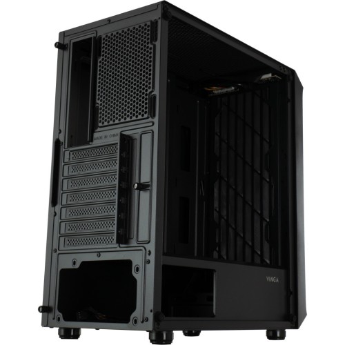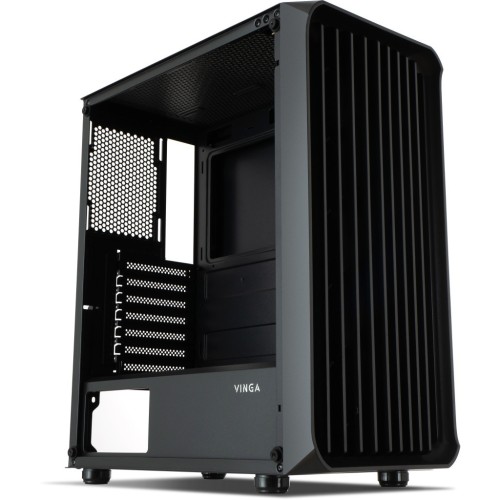 Корпус Vinga Creep дозволить сконструювати гарний геймерський комп'ютер: система вентиляції з вентиляційними гратами забезпечує нормальний температурний режим навіть при повному завантаженні. У корпусу є бічна панель з загартованого скла - вона прозора, тому користувач може побачити, як працює «начинка» корпусу. Місце для блоку живлення знаходиться на дні корпусу, це допомагає погасити вібрацію і зробити рівень шуму нижче навіть при повному навантаженні. На корпусі розташовані кнопки управління живленням і завантаженням системи, а також входи для навушників, USB-порти і входи для мікрофона. Максимально допустимий розмір карт для установки - до 345 мм, максимально прийнятна висота кулера - 160 мм.