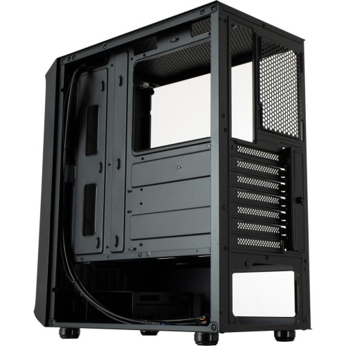 Геймерський корпус типорозміру Midi Tower має вертикальну установку, блок живлення не передбачений в комплекті. Корпус має 4 внутрішніх відсіків для розширення розмірами від 2.5 дюймів до 3.5 дюймів. Також є 7 слотів розширення. Охолодження здійснюється за допомогою 6 вентиляторів (опціонально), кожен - діаметром 12 см. Для зручності на корпусі розташовано чотири зовнішніх роз'єма, два USB 2.0, один USB 3.0, вхід для навушників і мікрофону.