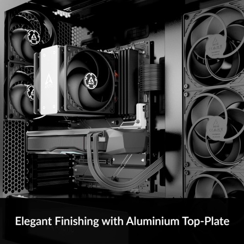 • Висококласне оздоблення з алюмінієвою верхньою пластиною: завдяки двотактній конфігурації Freezer 36 CO вражає не тільки ефективністю охолодження, а й своїм дизайном. Припаяні кінці теплових трубок приховані пригвинченою алюмінієвою кришкою, що дає змогу легко вписатися в будь-яку конфігурацію ПК і підкреслити як продуктивність, так і зовнішній вигляд.