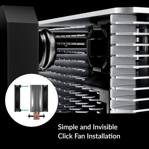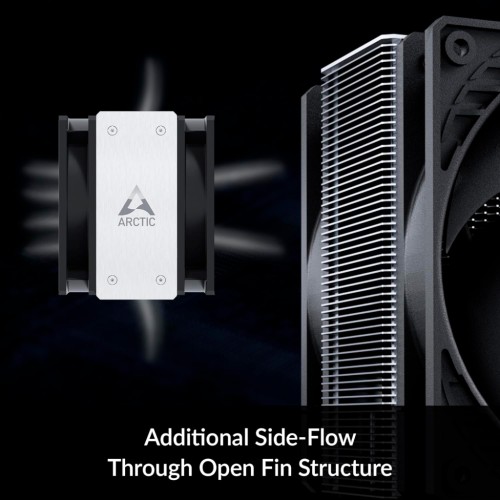 • Оптимізований радіатор: ребра радіатора відкриті збоку і дають змогу витяжному вентилятору витягати додаткове холодне повітря з корпусу ПК через радіатор. Така конструкція з бічним потоком забезпечує ще ефективнішу вентиляцію.