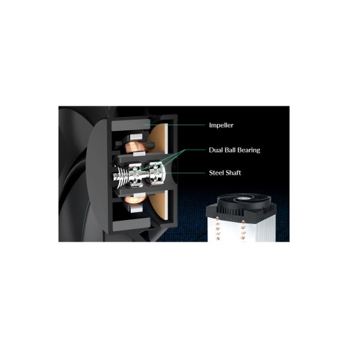Обидва вентилятори Freezer 4U-M обладнані подвійними шарикопідшипниками, що дає змогу забезпечити безперервну роботу в режимі 24/7 без найменшого збитку для продуктивності. Цей тип підшипників набагато стійкіший до забруднення і зносу під впливом високих температур, ніж звичайні підшипники ковзання або гідродинамічні підшипники, і тому є ідеальним вибором, якщо ви хочете забезпечити безвідмовну безперервну роботу.