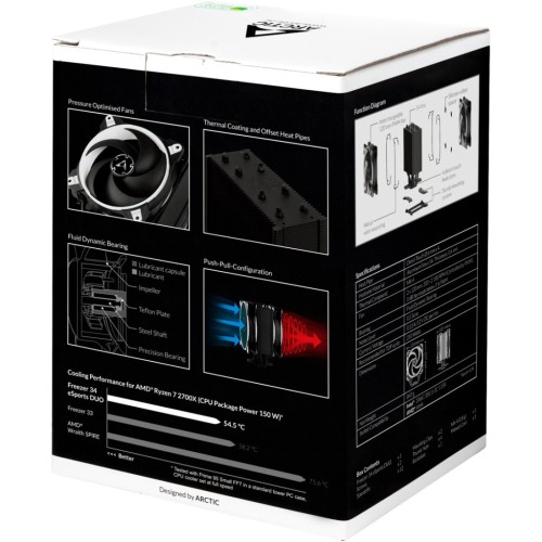Завдяки двом потужним вентиляторам BioniX P з оптимізованим тиском і оновленому радіатору з термічним покриттям Freezer 34 eSports DUO пропонує чудову продуктивність за справедливою ціною.