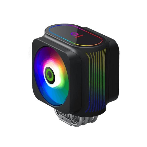 Gamemax GAMMA 600 - відмінний кулер для продуктивного процесора. Має різнокольорову RGB-підсвітку (з 10-ма режимами освітлення) вентилятора, тому виглядає яскраво та стильно доповнить геймерський ПК. Оснащений алюмінієвою основою, який сприяє кращому охолодженню компонента. Використовується конструкція лопатей SilentPro для підвищення ефективності конвекції повітря. Підходить майже на всі сокети. Швидкість обертання кулера складає 1000-2000 об / хв.