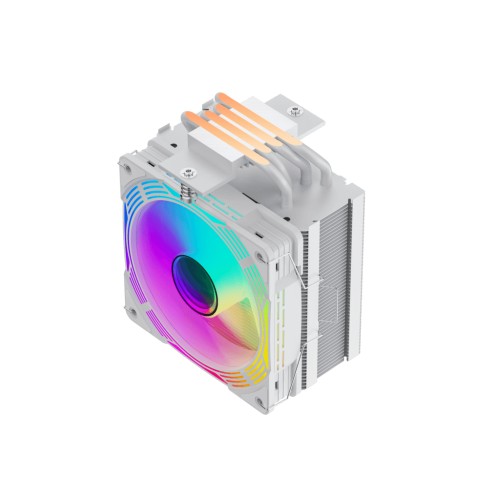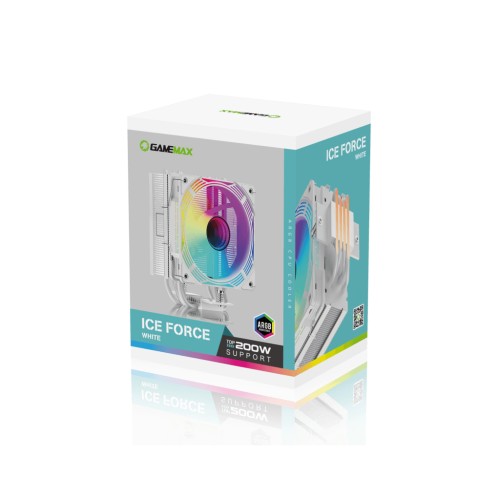 Кулер для процесора GAMEMAX Ice Force WH, пофарбований у білий колір, має чотири теплові трубки. Він підтримує процесори Intel Gen12, 13 та останню модель AMD, оснащений світловими ефектами ARGB. Максимальна теплова потужність процесора, з якою повинна справлятися система охолодження - 200W.
