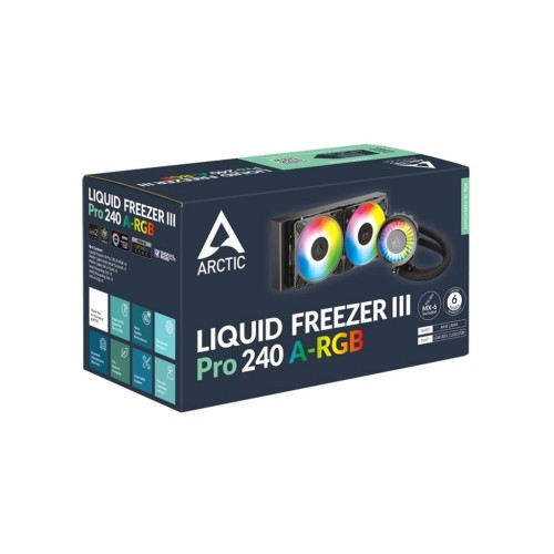 Arctic Liquid Freezer III Pro 240 ARGB — система рідинного охолодження, створена для ефективного охолодження сучасних процесорів Intel і AMD, навіть у компактних корпусах.