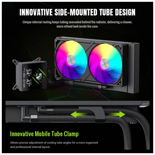 GLACIER 240 BK — це високопродуктивна СРО, яка поєднує ефективне охолодження, продуману ергономіку та преміальний дизайн. Вона створена для геймерів і ентузіастів, які хочуть не лише стабільної роботи процесора, а й акуратного, візуально привабливого складання.