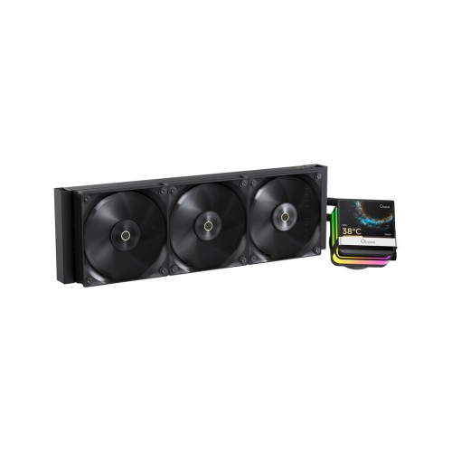 - Помпа оснащена 3,5-дюймовим квадратним IPS-екраном із роздільною здатністю 640×480 та надвузькою рамкою для відображення інформації про систему в реальному часі.