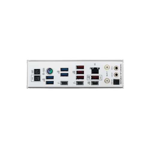 1 x Clear CMOS button; 8 x USB 3.2 Gen2; 1 x USB 3.2 Gen1 Type-C; 1 x BIOS FlashBack Button; 1 x Wi-Fi Module; 1 x RJ45; 1 x PS/2; 2 x Thunderbolt; 1 x coaxial SPDIF out; 2 x Audio