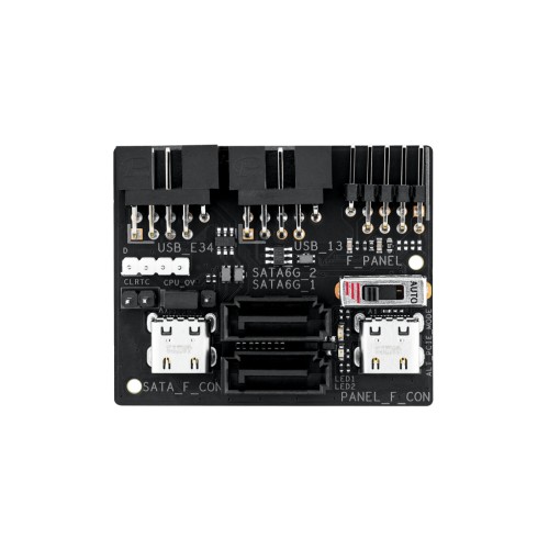• ROG FPS CARD. Плата ROG FPS групує входи/виходи на вертикально встановленій платі, що дає змогу заощадити корисний простір материнської плати та впорядкувати прокладання кабелів. Підключення також можна виконати до встановлення карти, що значно спрощує встановлення в тісних приміщеннях. Вона оснащена двома портами SATA, роз'ємами на передній панелі, двома роз'ємами USB 2.0 (для під'єднання до трьох USB 2.0), перемичкою CPU_OV для екстремального розгону і перемикачем режиму зміни PCIe