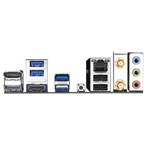 2 x SMA antenna connectors (2T2R); 4 x USB 3.2 Gen1; 1 x RJ45; 2 x USB 2.0; 1 x HDMI; 1 x DisplayPort; 3 x Audio