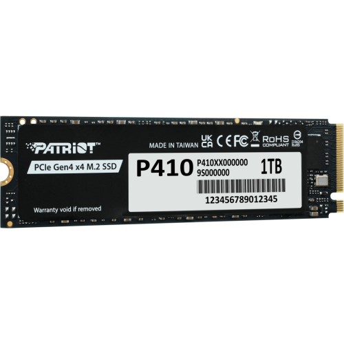 Удосконалена архітектура кешування підвищує швидкість запису, водночас знижуючи енергоспоживання та тепловиділення, що сприяє подовженню часу автономної роботи мобільних пристроїв. Тонкий, односторонній форм-фактор M.2 2280 гарантує широку сумісність із системами з обмеженим простором, а варіанти місткості до 4 ТБ дозволяють зберігати більше важливих даних. Підтриманий 5-річною гарантією Patriot, P410 створений для надійної та безперебійної щоденної роботи.