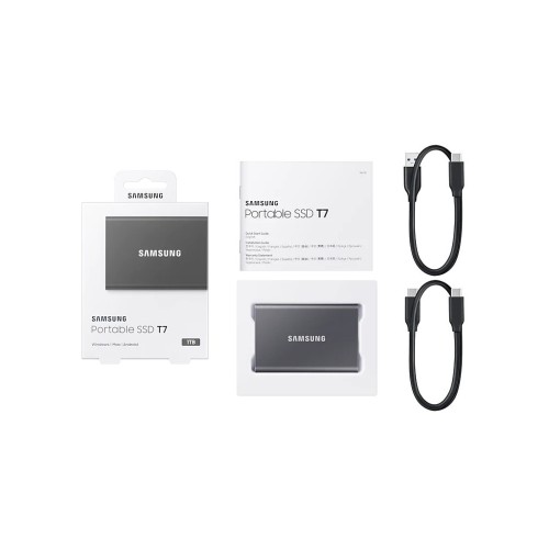 Потужний зовнішній накопичувач Накопичувач SSD USB 3.2 2TB T7 Samsung (MU-PC2T0T/WW) відкриває новий рівень зберігання даних для всіх, хто цінує швидкість та надійність. Незалежно від того, чи ви граєте в нові ігрові релізи, чи ведете професійні проекти, ця модель забезпечує виняткову швидкість і безпеку завдяки інтерфейсу USB 3.2 Type-C. Вибір накопичувача T7 означає постійний доступ до даних у миттєвому виконанні, оскільки він має швидкість читання 1050 MB/s і запису 1100 MB/s.