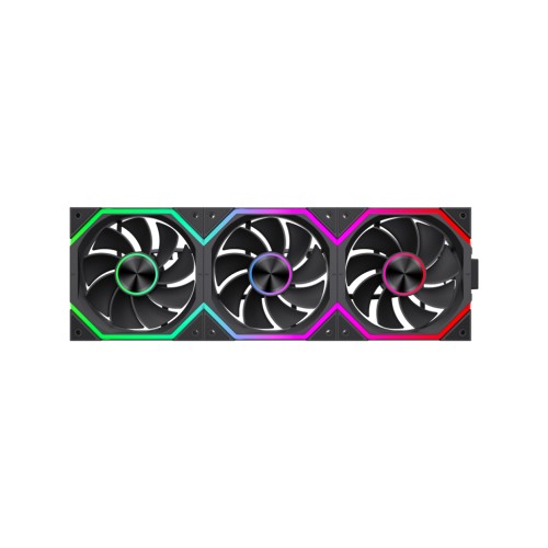 Вентилятор має ідентичне ARGB-підсвічування з обох сторін, доповнене витонченим центральним світловим кільцем. Така конструкція створює збалансований та акуратний світловий ефект незалежно від способу встановлення.