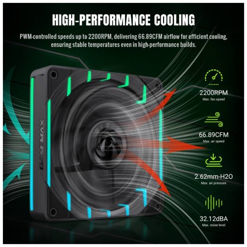 • Потужне охолодження: Завдяки ШІМ-регулюванню температури він досягає високої швидкості 2200 об/хв та забезпечує потужний повітряний потік 66.89 кубічних футів за хвилину, забезпечуючи стабільну роботу хоста під великими навантаженнями.