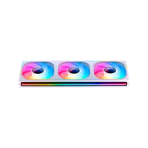 Швидкість обертання вентиляторів варіюється в діапазоні від 700 до 2400 об/хв, що дозволяє адаптувати продуктивність до потреб системи, а підтримка PWM-керування забезпечує оптимальний баланс між ефективністю охолодження та рівнем шуму, який коливається від 20.95 до 65.26 дБ залежно від навантаження. Однією з ключових особливостей є технологія Infinity Mirror з регульованою адресною RGB-підсвіткою, яка створює захопливий візуальний ефект із глибиною та яскравістю.