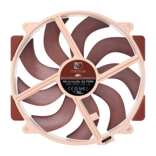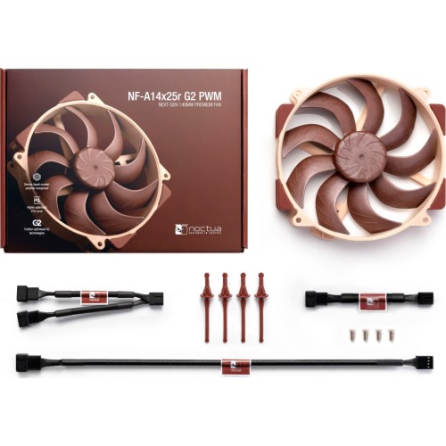 NF-A14x25r G2 — кулер для корпуса від виробника Noctua. Прийшов на зміну відзначеному нагородами NF-A15 і ґрунтується на технологічних інноваціях революційного NF-A12x25. Ідеально підходить для радіаторів Noctua наступного покоління, але також є відмінним оновленням для існуючих моделей охолоджувачів.