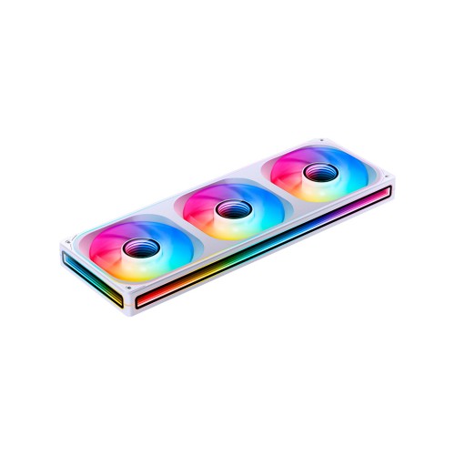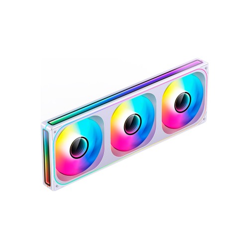 Швидкість обертання вентиляторів варіюється в діапазоні від 700 до 2400 об/хв, що дозволяє адаптувати продуктивність до потреб системи, а підтримка PWM-керування забезпечує оптимальний баланс між ефективністю охолодження та рівнем шуму, який коливається від 20.95 до 65.26 дБ залежно від навантаження. Однією з ключових особливостей є технологія Infinity Mirror з регульованою адресною RGB-підсвіткою, яка створює захопливий візуальний ефект із глибиною та яскравістю.