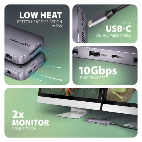 Концентратор AXAGON USB-C 12-in-1 HDMI + DisplayPort + RJ45 1000Mbps + PD100W aluminum gray (HMC-12GM2)