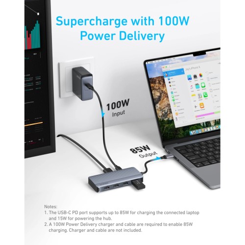Підтримка 100 Вт на вході та до 85 Вт на виході для стабільного живлення твоїх пристроїв.