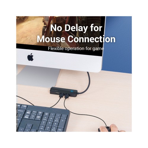Хаб USB 3.1 Type-C Vention TGOBB перетворить один з портів вашого USB-С пристрою на три порти USB-A зі швидкістю передачі даних до 480 Мб/с. Ви зможете одночасно під’єднати до нього клавіатуру, мишу, флеш-накопичувач тощо.