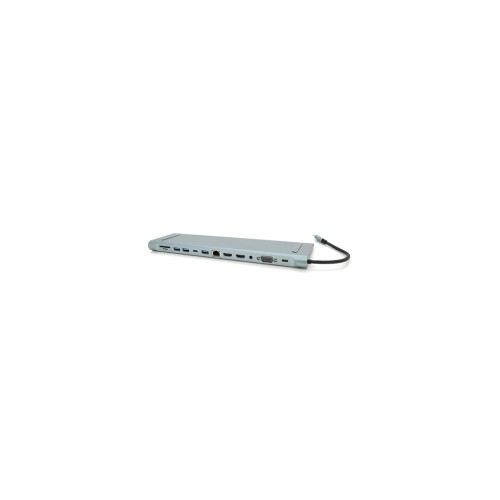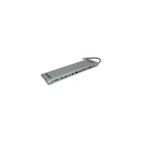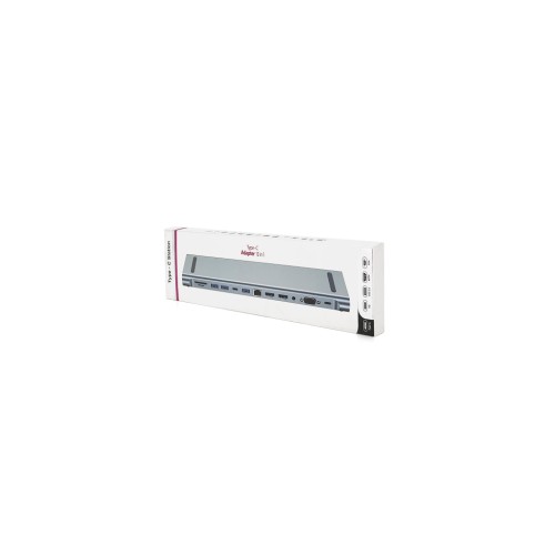 Опис: Хаб-конвертор 12 в 1 Type-C (тато) на Type-C(мама)+2*USB2.0(мама)+USB3.0(мама)+2*HDMI(мама)+VGA(мама)+ SD/TF+RJ45+ jack3.5 (мама)+PD, 10cm, Silver, Box