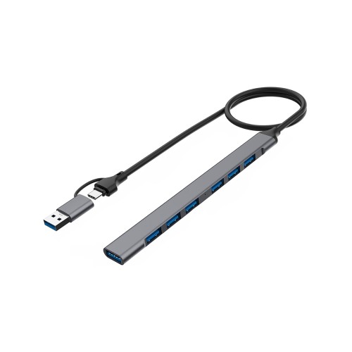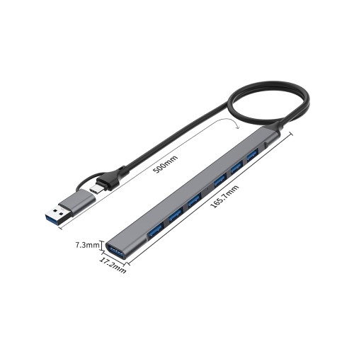 XOKO AC-700m USB/Type-c 3.0 chip 7 USB hub — металевий зарядний концентратор на 6 портів USB 2.0, 1 порт USB 3.0 одразу приверне вашу увагу завдяки елегантному металевому дизайну. Це ідеальний компаньйон для всіх, кому не вистачає портів USB у ноутбуці, ультрабуку або ПК і кому доводиться постійно підключати та відключати своє улюблене USB-обладнання, таке як флешки, мобільні телефони, планшети, цифрові фотоапарати, MP3-плеєри, принтери тощо.