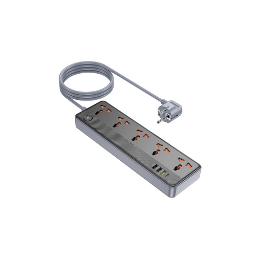 Мережевий подовжувач Borofone BAC5A Lord забезпечує максимальну універсальність зарядки ваших пристроїв завдяки різноманітності портів. Чотири порти (3 × USB-A, 1 × Type-C) та п’ять розеток AC дозволяють одночасно підключати до дев’яти пристроїв без необхідності шукати додаткові розетки. Це зручно як вдома або в офісі, так і в подорожах та відрядженнях.