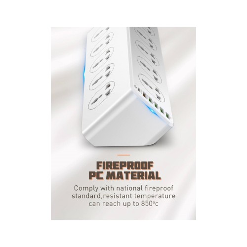 Мережевий подовжувач LDNIO SC10610 виконаний в ергономічному корпусі у вигляді трикутника із пожежобезпечного ABS-пластику, який стійкий до температур до +850 градусів. Десять універсальних розеток для підключення побутової та комп'ютерної техніки розташовані на достатній відстані один від одного, дозволяючи приєднувати вилки живлення різного формфактора.