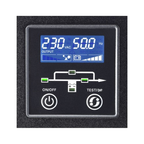 Управління пристроєм максимально спрощене завдяки інтерфейсам USB та RS-232, що дозволяють інтегрувати його у вашу існуючу інфраструктуру та керувати параметрами роботи через ПК. Наявність РК-дисплея забезпечує зручний моніторинг стану батареї та роботи пристрою, дозволяючи оцінювати рівень навантаження та тривалість автономної роботи.
