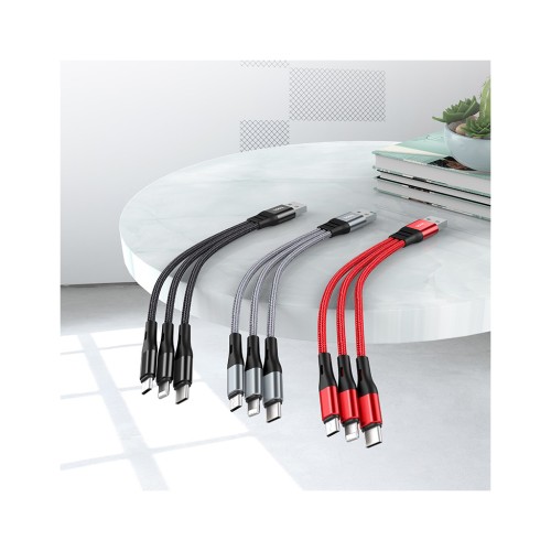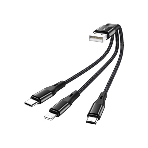 Дата кабель USB 2.0 AM to Lightning + Micro 5P + USB-C 0.25m 2.4A nylon X47 black HOCO (6931474727398)