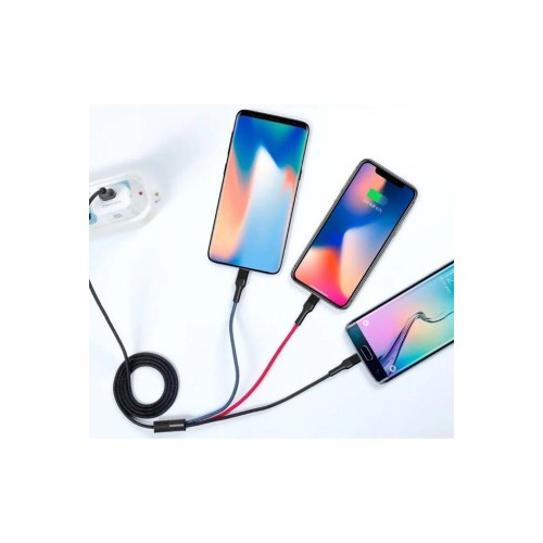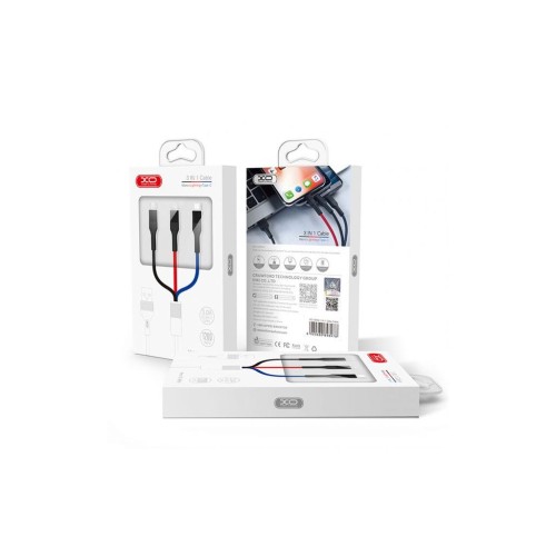 Кабель надійний XO NB54 3in1 USB – Lightning + MicroUSB + Type-C 1,2 м Чорний– універсальний кабель, який може використовуватись для одночасного заряджання кількох пристроїв.