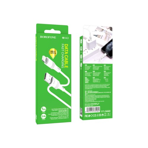 Дата кабель USB 2.0 AM to Lightning 1.0m 2.4A PVC BX43 white BOROFONE (6931474735584)