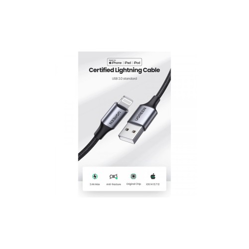 Дата кабель USB 2.0 AM to Lightning 1.0m 2.4A US199 black Ugreen (60156)