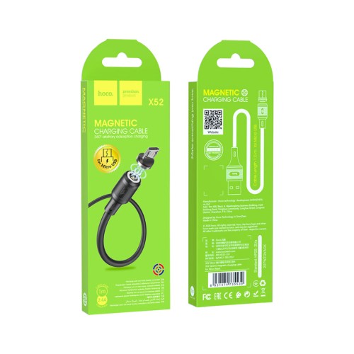 Дата кабель USB 2.0 AM to Micro 5P 1.0m 2.4A magnetic PVC X52 black HOCO (6931474735539)