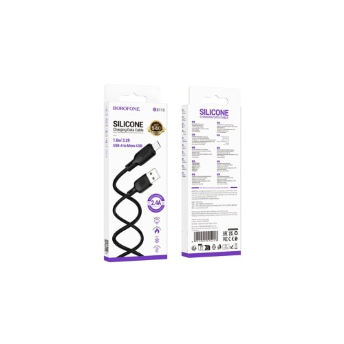Кабель BOROFONE BX113 Lenny USB-A to Micro-USB — це стильний та функціональний кабель у м’якому силіконовому обплетенні, призначений для ефективної зарядки, синхронізації та передачі даних між пристроями. Струм до 2.4 A оптимізований для підтримки швидкого заряджання ваших девайсів. Кабель забезпечує надійну та стабільну передачу даних між пристроями, а мала вага та компактний дизайн роблять його зручним для перенесення та використання в дорозі. Силіконове обплетення не тільки надає кабелю стильного вигляду, але й зміцнює його, роблячи більш стійким до зносу і запобігаючи заплутуванню.