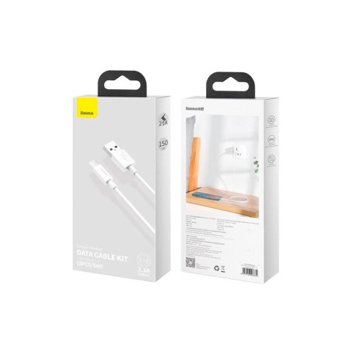 Дата кабель USB 2.0 AM to Micro 5P 1.5m 2.1A Simple WisdomKit (2PCS) white Baseus (TZCAMZJ-02)