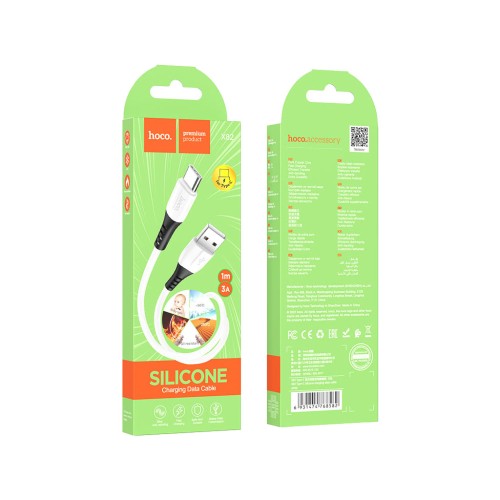 Дата кабель USB 2.0 AM to USB-C 1.0m 3A silicone X82 white HOCO (6931474768582)