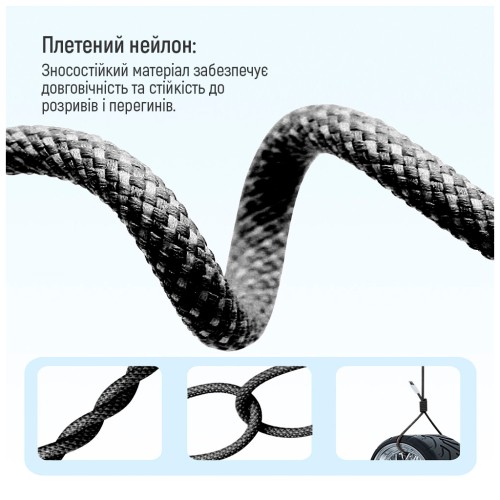 • Плетена тканина: Зносостійкий матеріал забезпечує довговічність та стійкість до розривів і перегинів.
