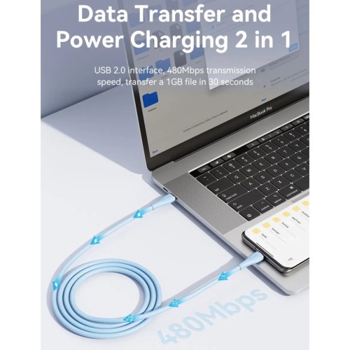 USB-C to USB-C 1.0m USB2.0 100W (20V/5A) Light Blu
