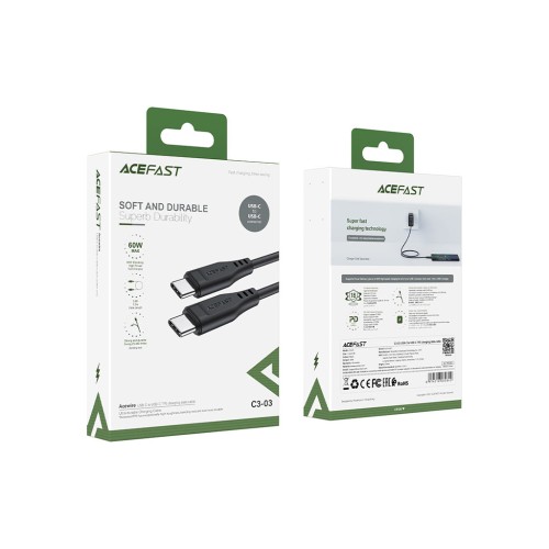 Дата кабель USB-C to USB-C 1.2m 3A TPE C3-03 Black Acefast (6974316280842)
