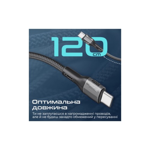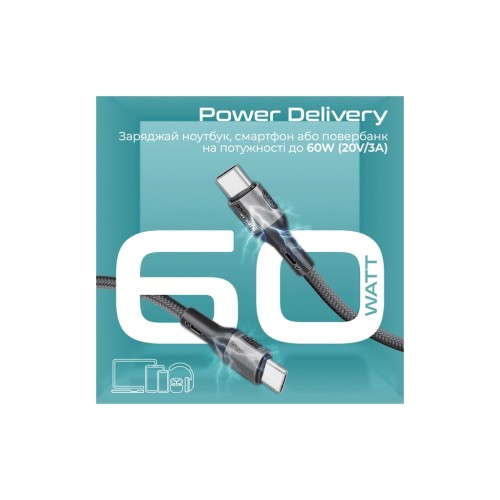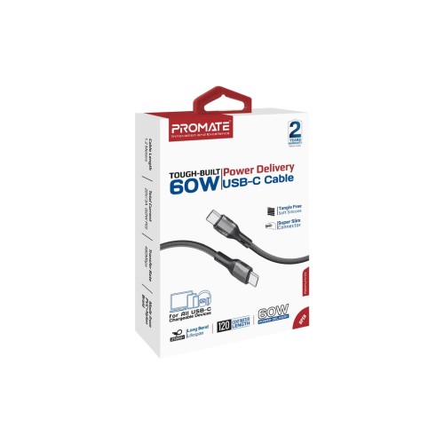 Дата кабель USB-C to USB-C 1.2m 60W PD FletchLink-CC black Promate (fletchlink-cc.black)