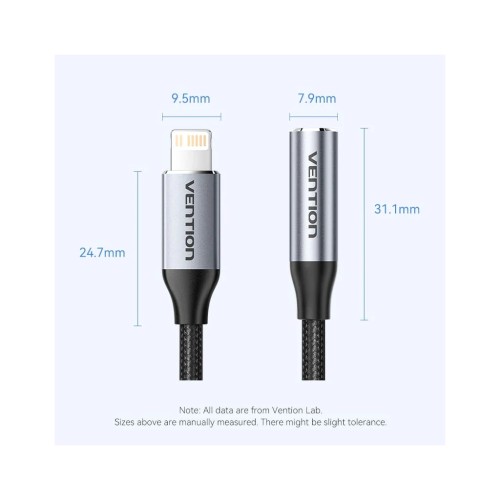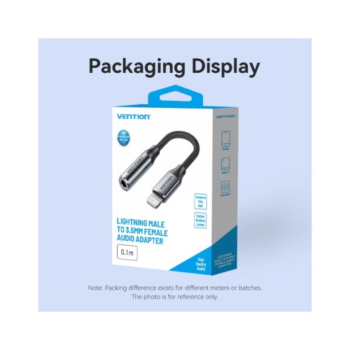 Перехідник Lightning to 3.5mm 0.1m cotton braided aluminum gray Vention (BMBHA)
