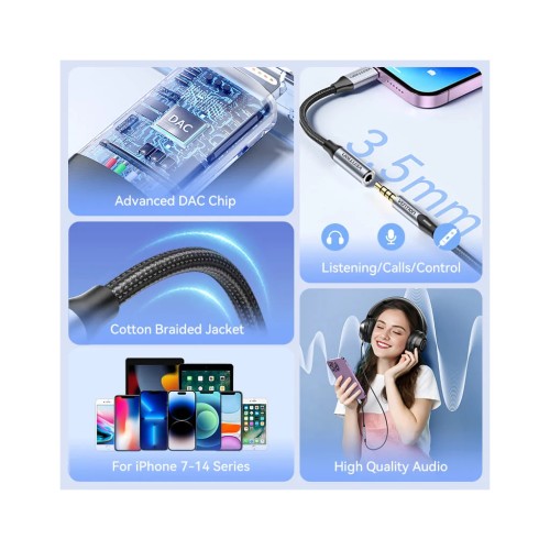 Lightning to 3.5mm 0.1m cotton braided aluminum gr