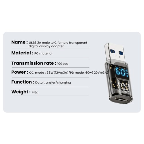 USB 3.2 AM to USB-C F 10Gbps QC 36W PD60W with dis