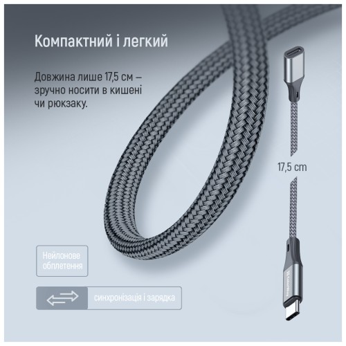 • Компактний та легкий — довжина кабелю 17.5 см.