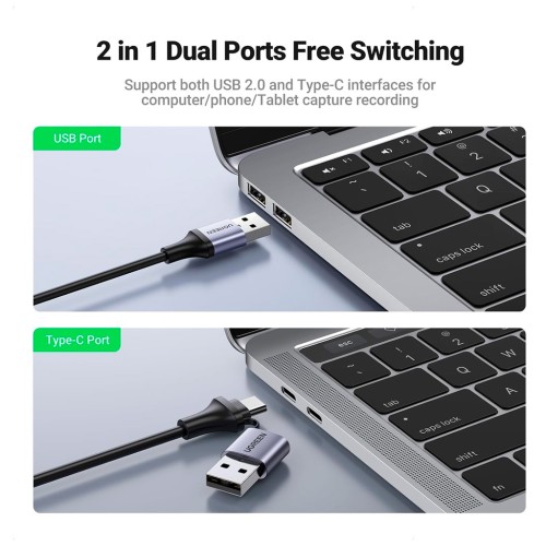 Завдяки роз'ємам USB типу A та USB типу C карта захоплення аудіо-відео UGREEN 4K HDMI підтримує більшість ноутбуків, MacBook, iPad, планшетів та телефонів із системами Windows 8.1/10/11, Mac OS, iOS 17, Linux та Android. Також підтримуються пристрої з відеовиходом HDMI, такі як ТВ-приставка, ТВ-приставка, комутатор NS, PS5/PS4, Xbox Series S/X, дзеркальна камера, відеокамера Rasperry Pi. Карта захоплення USB HDMI працює з програмним забезпеченням для потокової передачі та захоплення, таким як Twitch, YouTube, FaceBook, OBS, XSplit, Potplayer, Streamlabs.