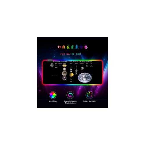 Килимок для миші "Planets scales" - це тканинний килимок з бічним прошивкою, товщиною 3 мм і RGB підсвічуванням. Він оснащений живленням через USB кабель довжиною 1,8 м і поставляється у зручній коробці.